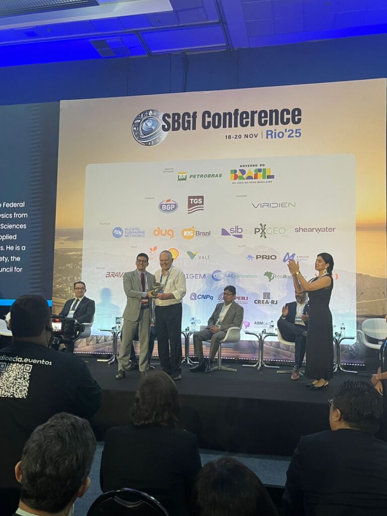O pesquisador Francisco José Fonseca Ferreira, da Universidade Federal do Paraná (UFPR) e integrante do Instituto GeoAtlantico (IGA), foi homenageado durante a abertura do SBGf Conference Rio’25, realizada em 18 de novembro, na Expo Rio. O reconhecimento destacou sua expressiva contribuição para o desenvolvimento da geofísica no Brasil.